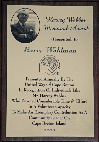 EPIC is happy to announce that founder Barry Waldman is the recipient of the third annual Harvey Webber Memorial Award. The award was presented at the United Way of Cape Breton Annual General Meeting, held at Membertou on April 15, 2008.